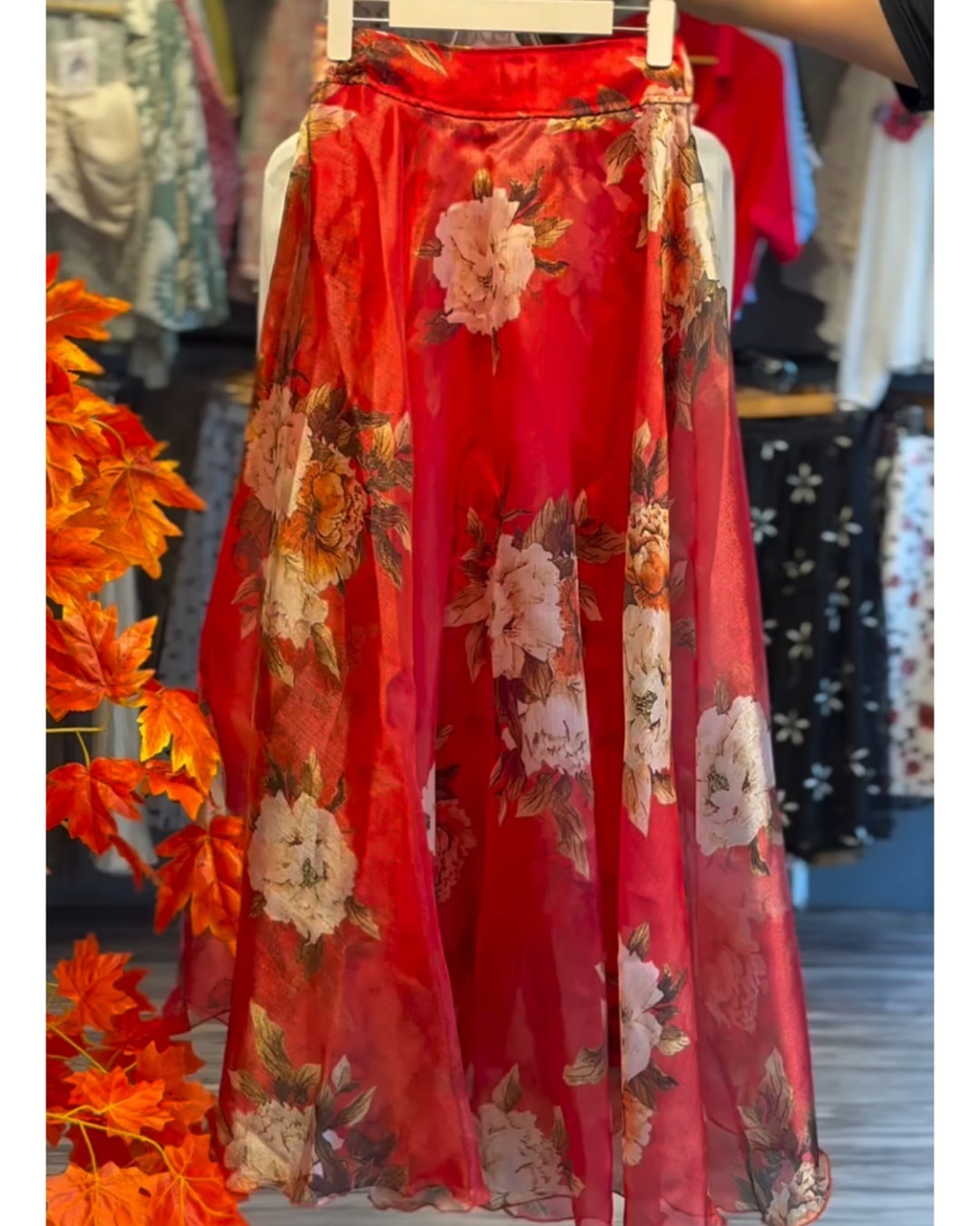 Step into effortless style with our premium Georgette Top & Digital-Print Organza Skirt Set — designed for women who love comfort, glamour, and graceful movement. This outfit blends lightweight georgette with the dreamy shine of organza, making you stand out at any event.